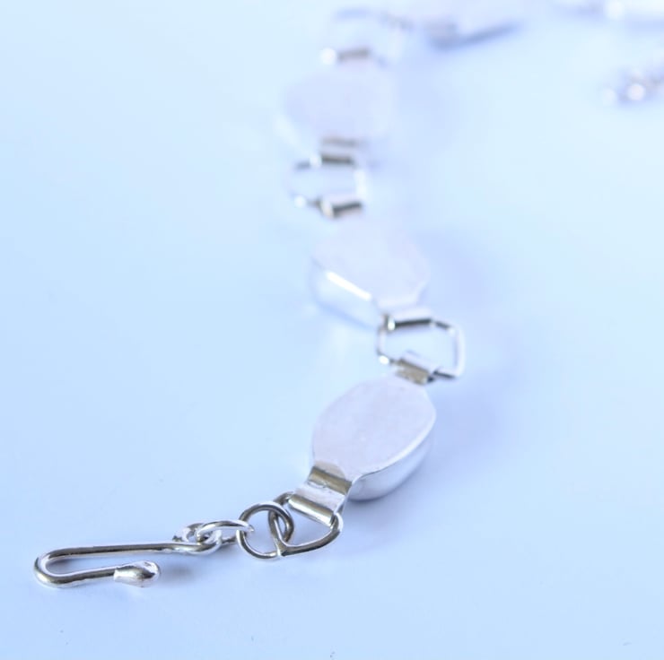 Approximately 17-19cm, finished with a hand made sterling silver S clasp.
