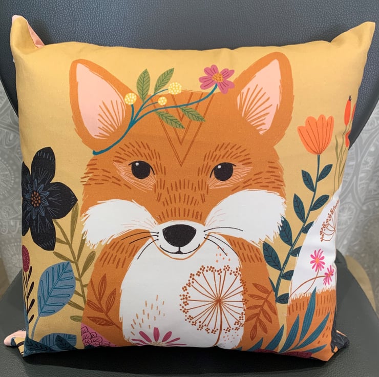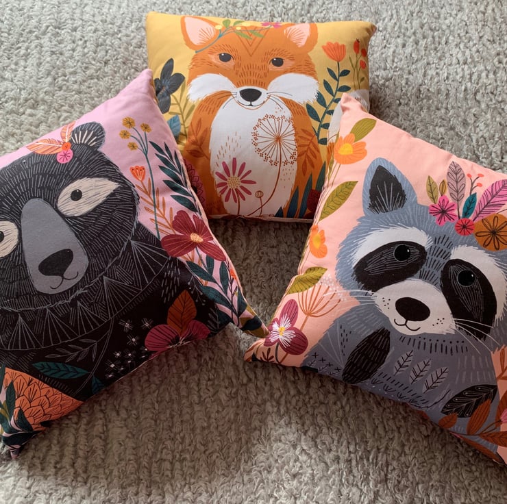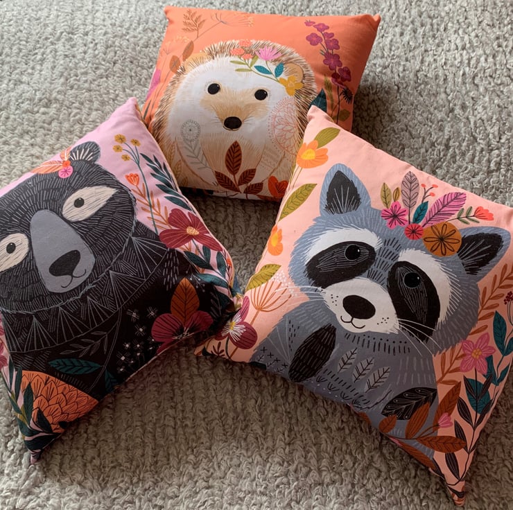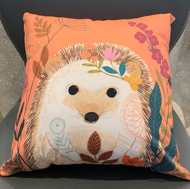 This cushion has the fox on one side and the hedgehog on the other. The colour scheme and design are particularly lovely.