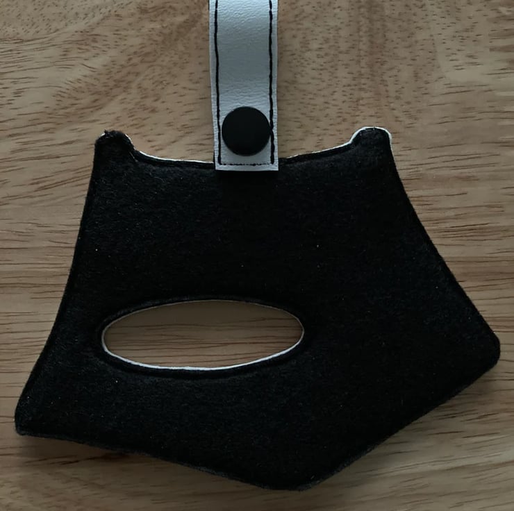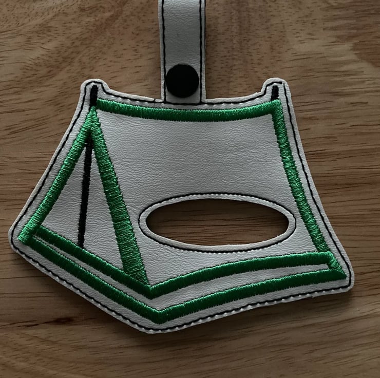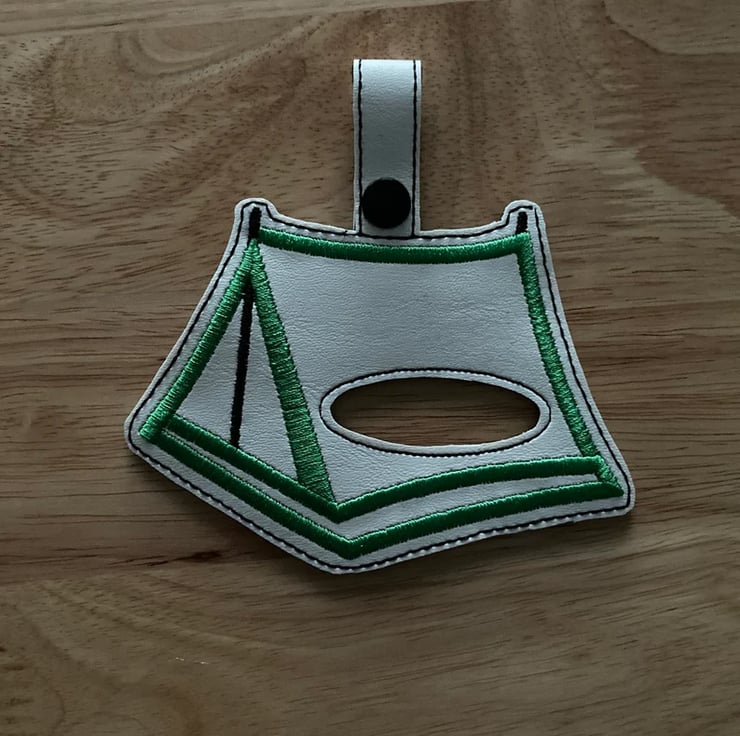Tent tea towel holder made from vinyl and backed with felt.
