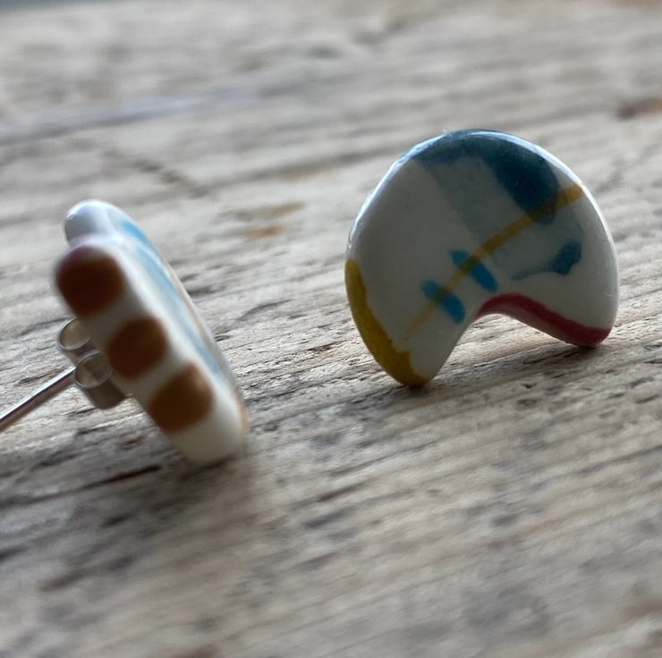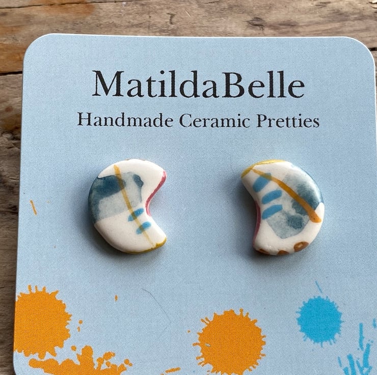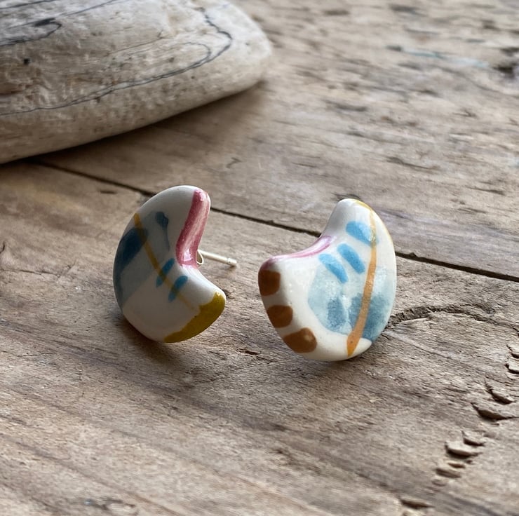 Handmade Ceramic Stud earrings. These beautiful earrings are handmade from Earthenware clay before being hand painted using a mixture of ceramic slips and underglazes.