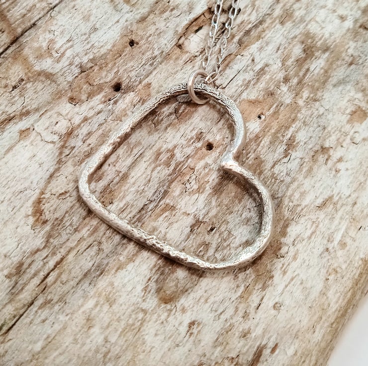 I have made this heart pendant from classic sterling silver which I have repeatedly heated and cooled to create a reticulated distressed one of a kind finish.