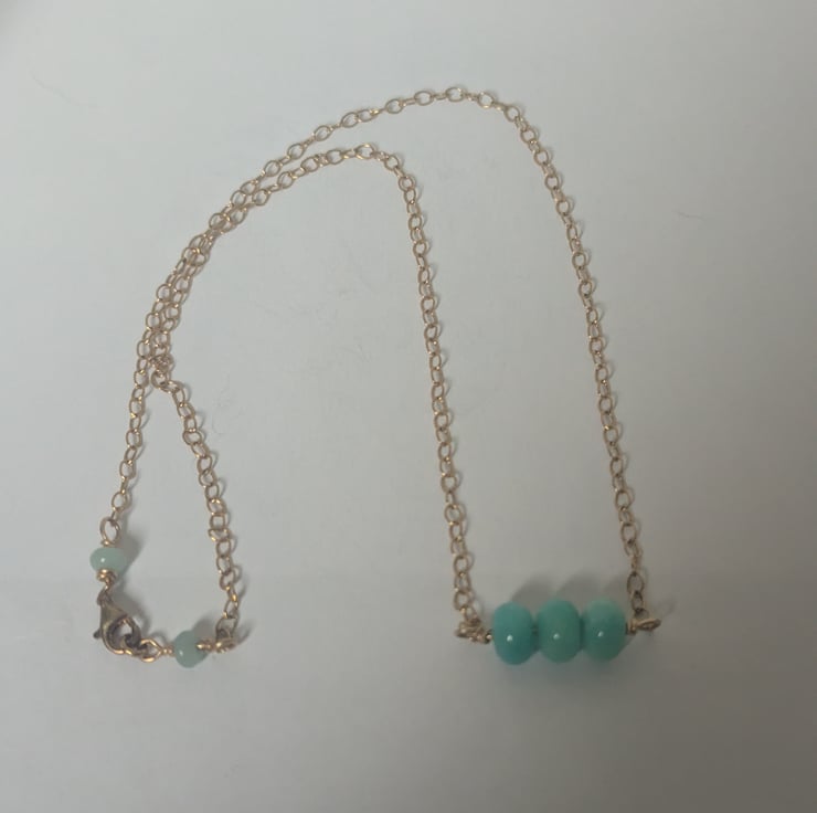 I was really drawn to these beautiful Amazonite beads. The green-blue colour is very summery and conjures up sunshine even on a dull day. This would look lovely layered with a gold chain.