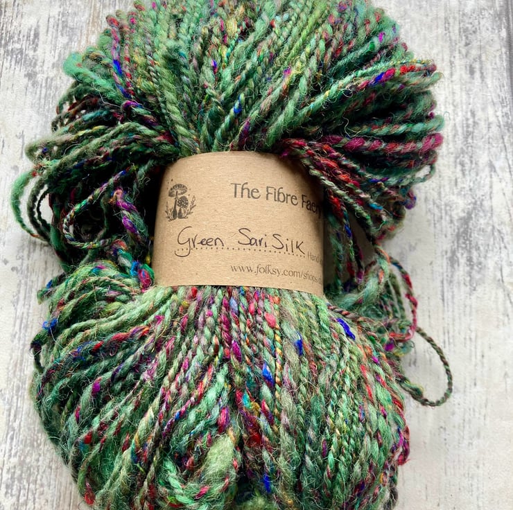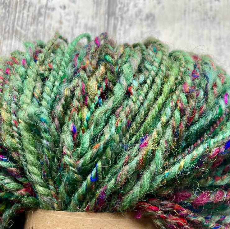 This is a mixture of fibres including sari silks, locks, merino, Corriedale and Angelina for sparkles.