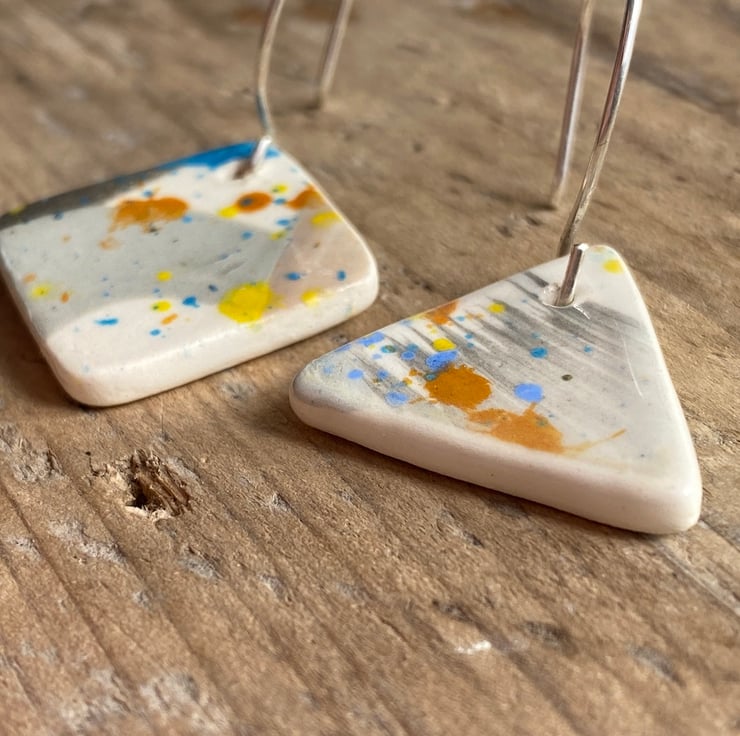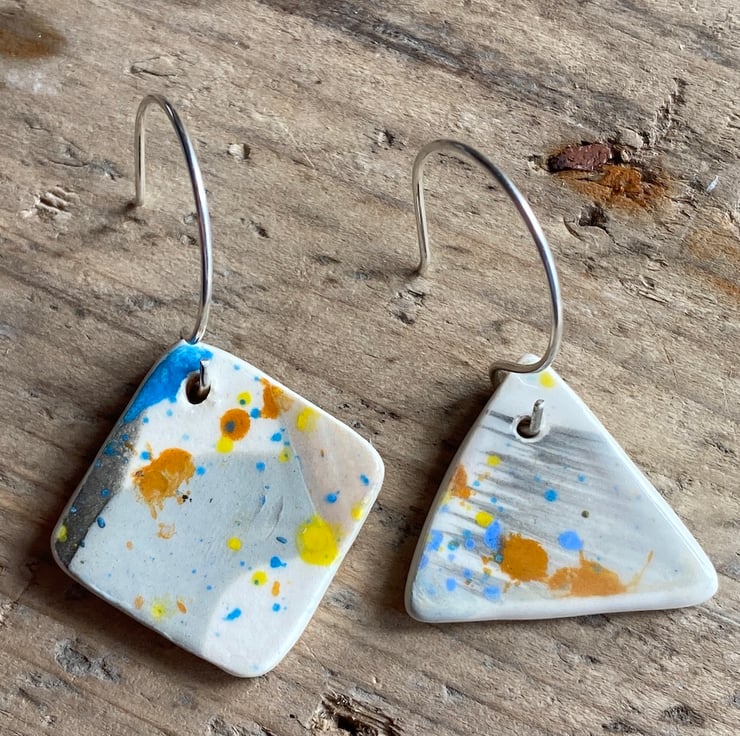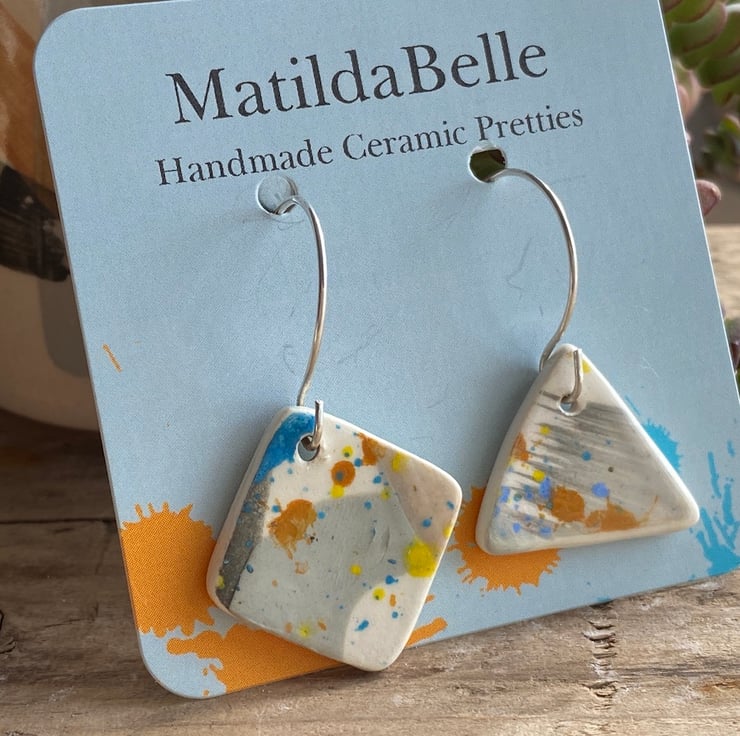 Stunning handmade mismatched ceramic drop earrings from the Splash range here at MatildaBelle.