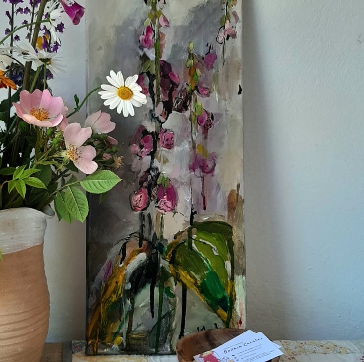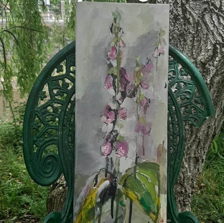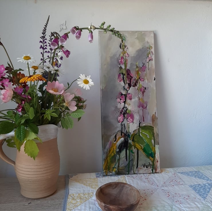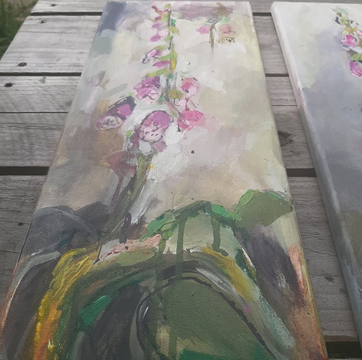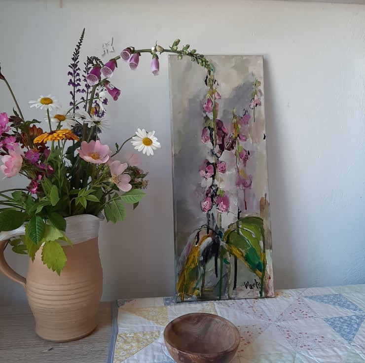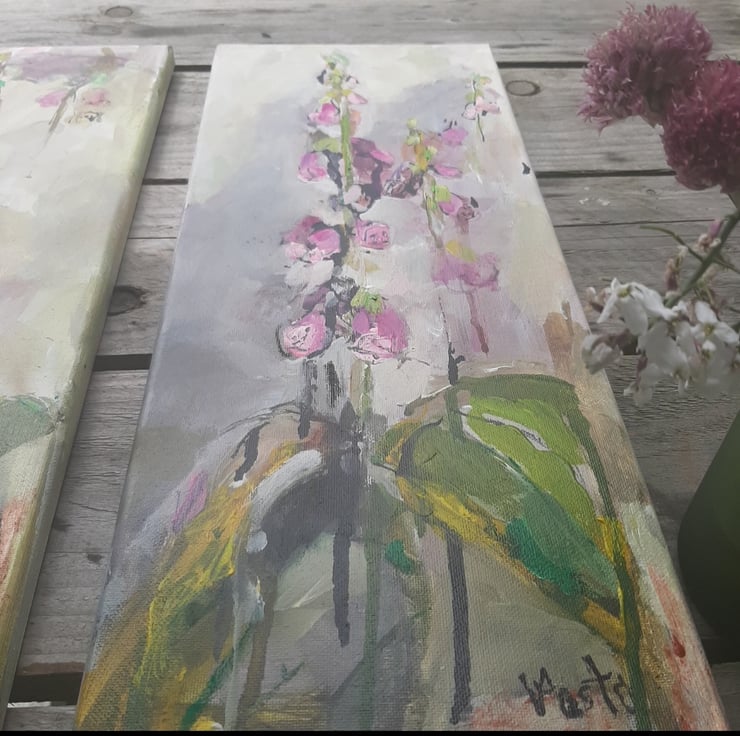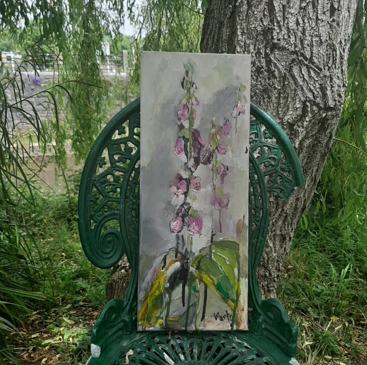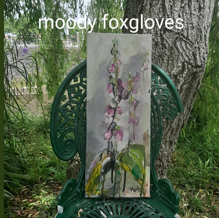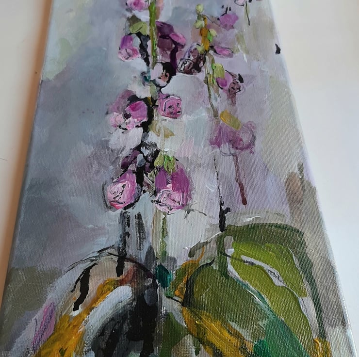 My moody foxgloves are full of atmosphere confidently painted by myself hesta singlewood aka bodkincreates on Instagram I am pleased with this Contemporary flower painting and is an original piece art. Measuring appox 52 cm tall 20 cm wide.