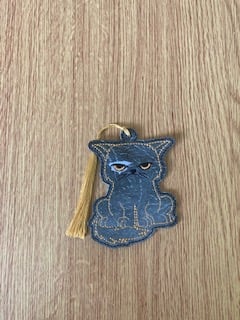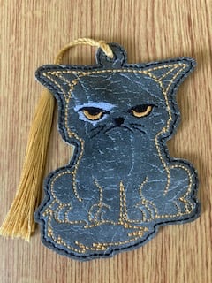 Grumpy cat bookmark made from vinyl and backed with felt.