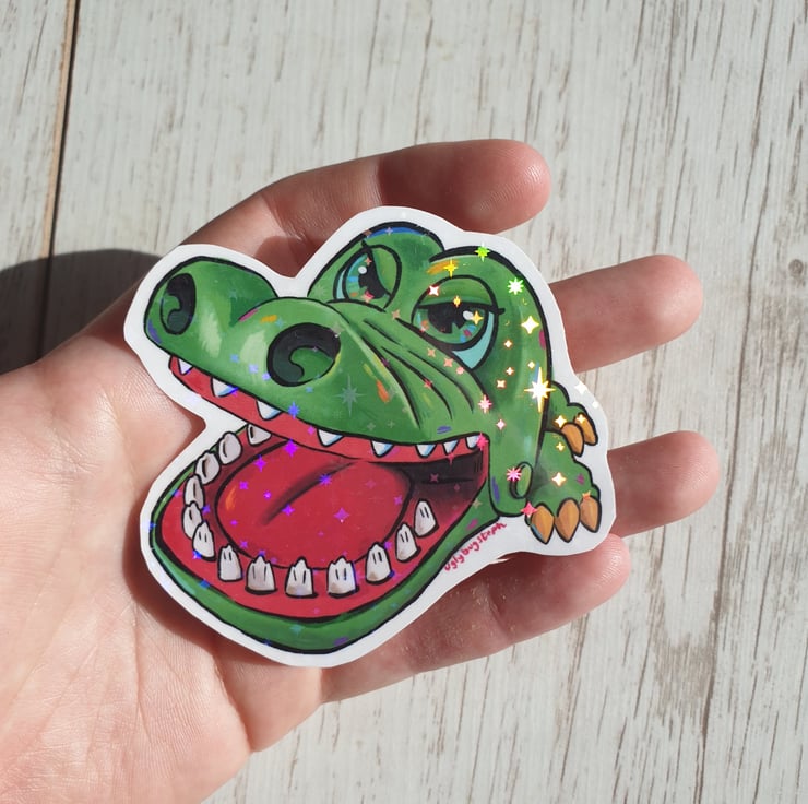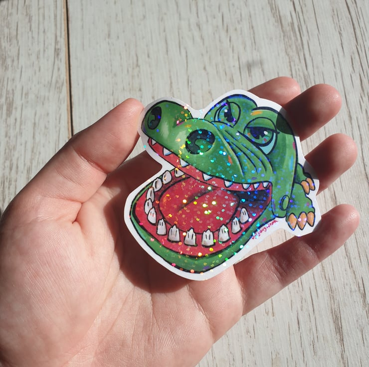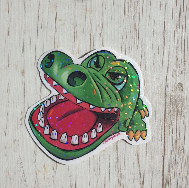 Get ready to feel the nostalgia with this handmade illustrated sticker of the top 90s game: Crocodile Dentist!