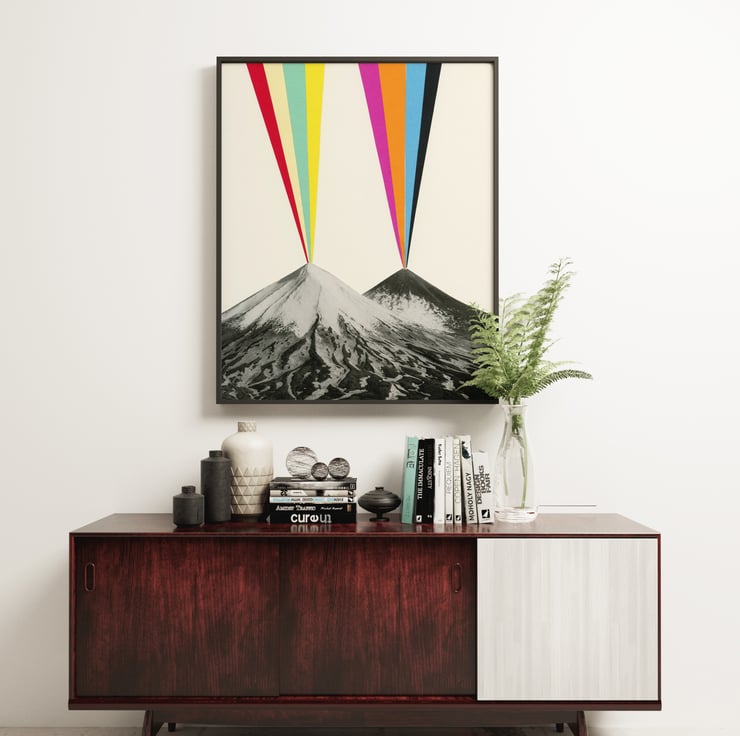 A vibrant, explosive volcano print. Perfect for any room in need of colour.