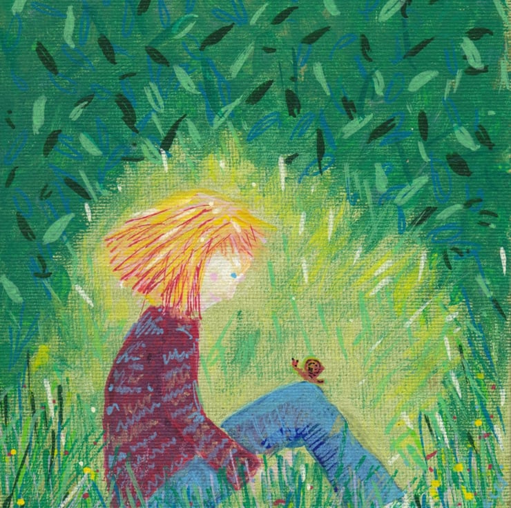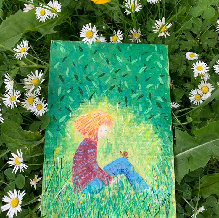 The time when you are young when all you want to do is sit quietly down amongst the flowers. I am inspired by nature and particularly love it when the grass is left to grow and all the buttercups and daisies make an appearance.