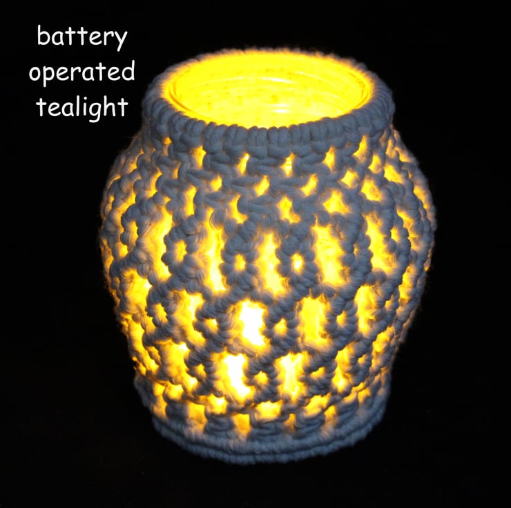 PLEASE NOTE the tea light used in the photos is battery operated as this jar has been upcycled and was not originally designed for flame.