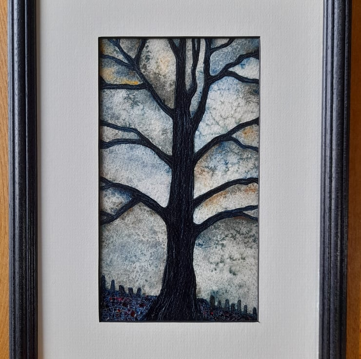 Silent Witness is an original framed watercolour painting. Colour and texture have been used to create mood and atmosphere.
