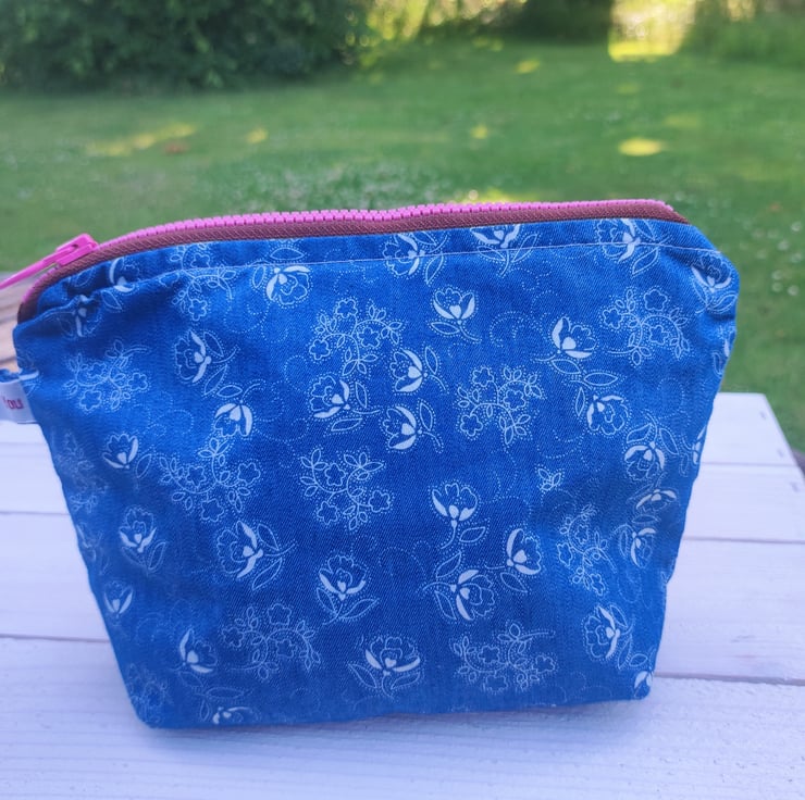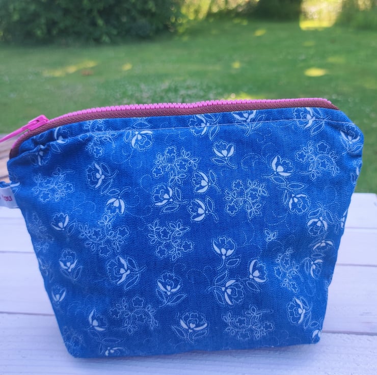 A multi coloured YKK zip and the lovely flower pattern gives the small bag a cute look.