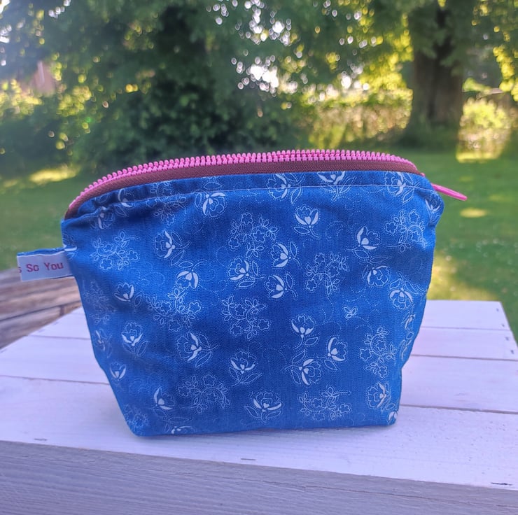 The pouch is 20cm wide and 15cm long and fits in your hand or work bag. But it has enough space for your makeup, small toiletries, head phones or other bibs and bobs.