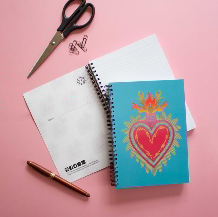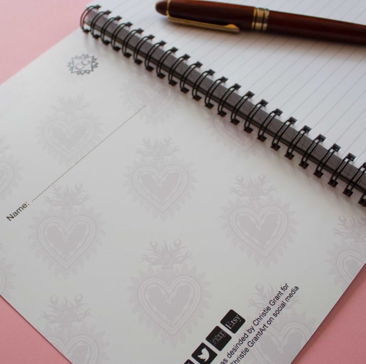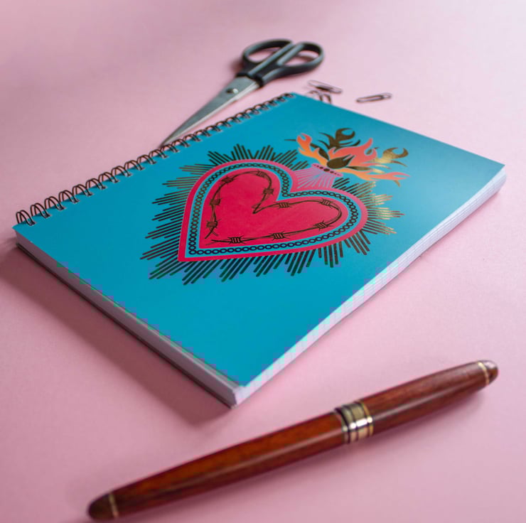 Full colour digitally printed 160-page A5 wire-bound notebooks foiled with gold onto white 380gsm matte laminated cover stock!