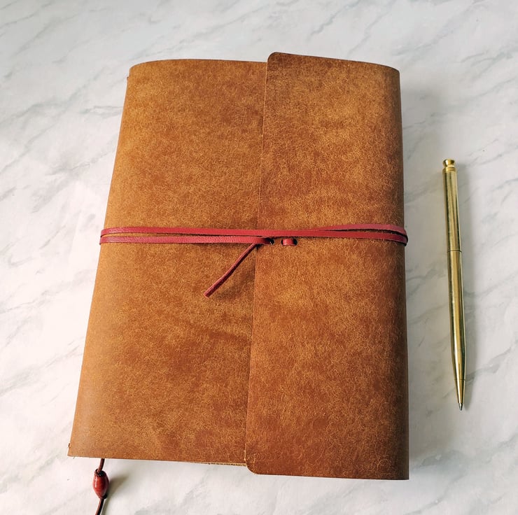 A beautiful wrap-over notebook cover, for three notebooks up to A5 size.