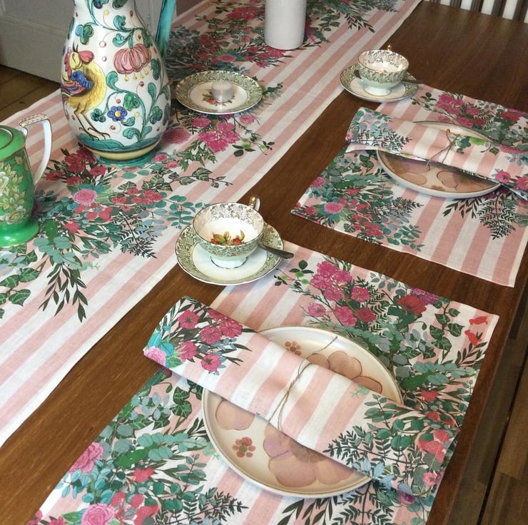 The flowers and Stripes design is also available in matching napkins and placemats.