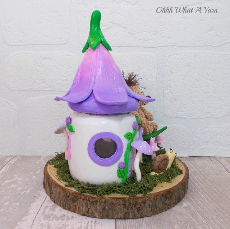 The little fairy house has a flower topped roof which can be removed so you can pop a battery operated tealight or bottle lights inside (not suitable for candle tealights). The little house is decorated with vines, leaves and flowers.