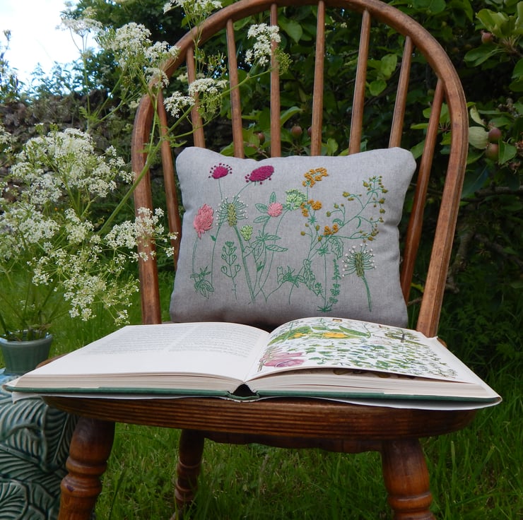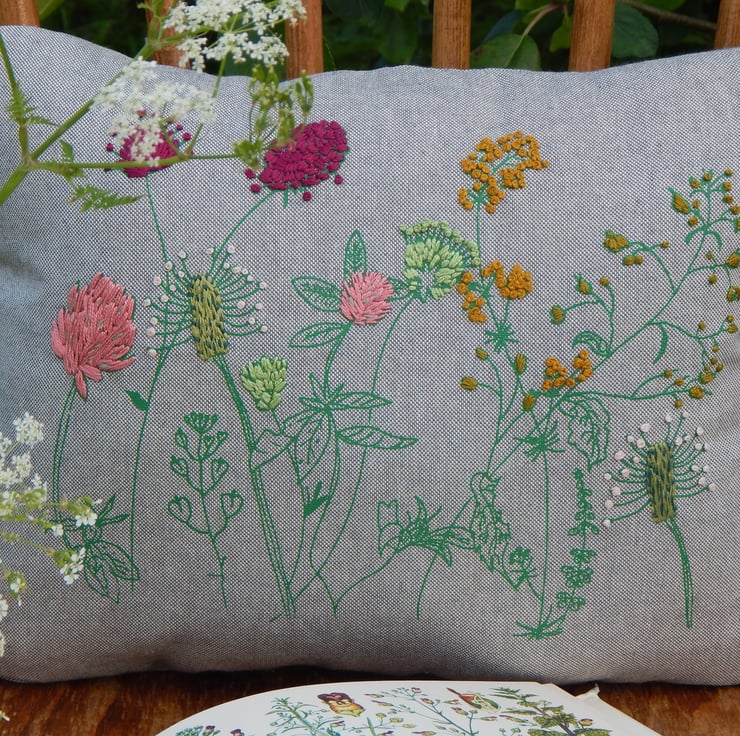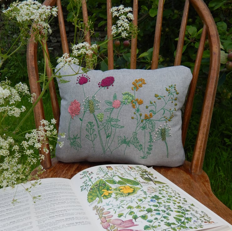 There are plantain, red clover, figwort, shepherds purse and bedstraw. Many of the flowers are hand embroidered.