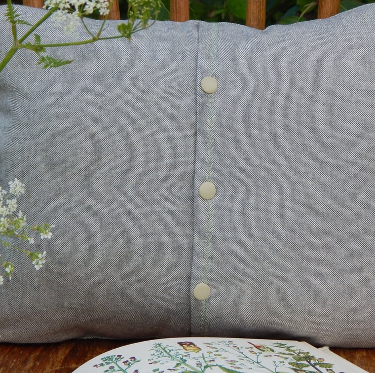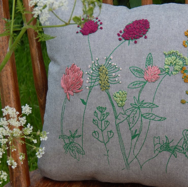 This is a light grey cotton, linen look cushion that I have screen printed with my hedgerow flower designs. The cushion measures 33cm by 24cm.