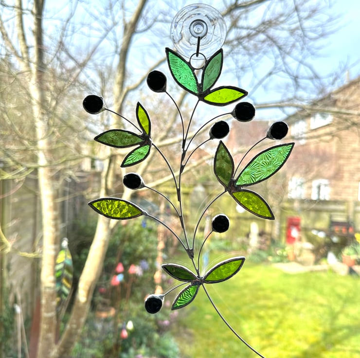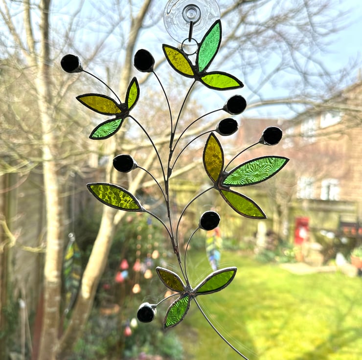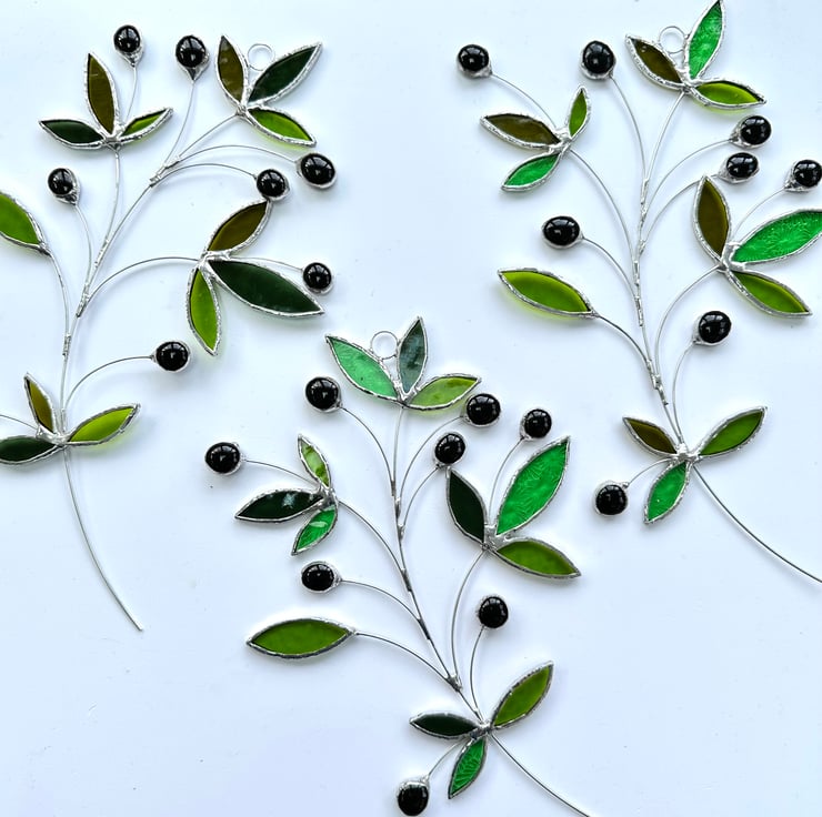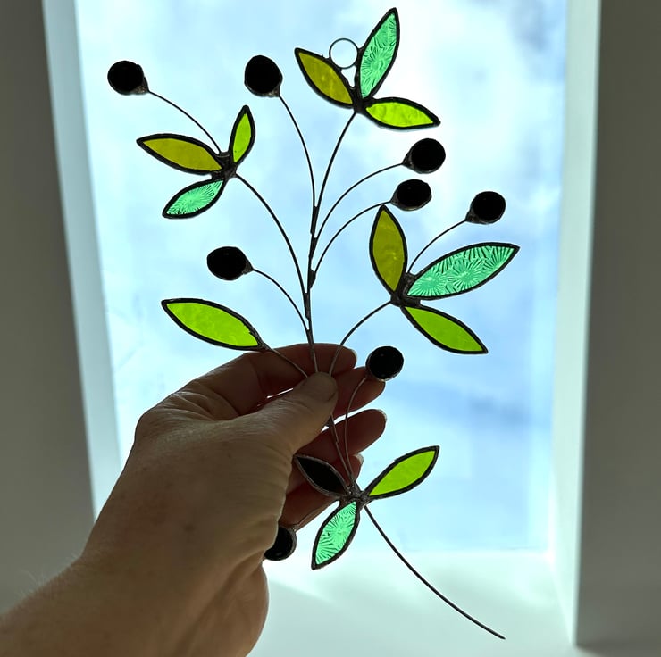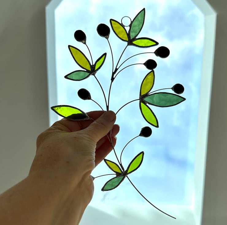 Olive branch suncatcher made in stained glass by Carole’s Glass.