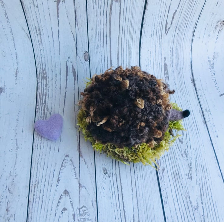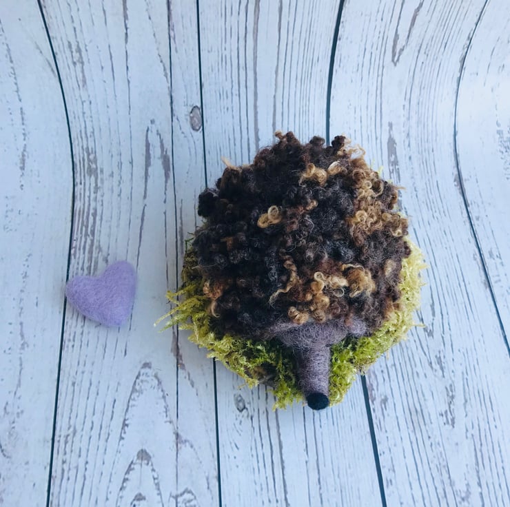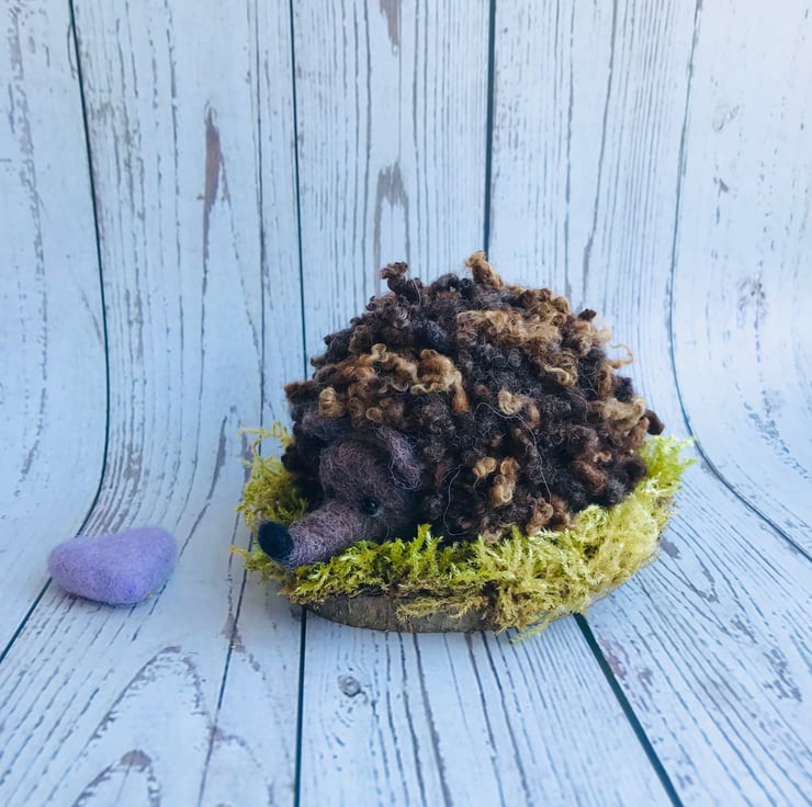 This is Hetty the Needle Felted Curly Hedgehog.