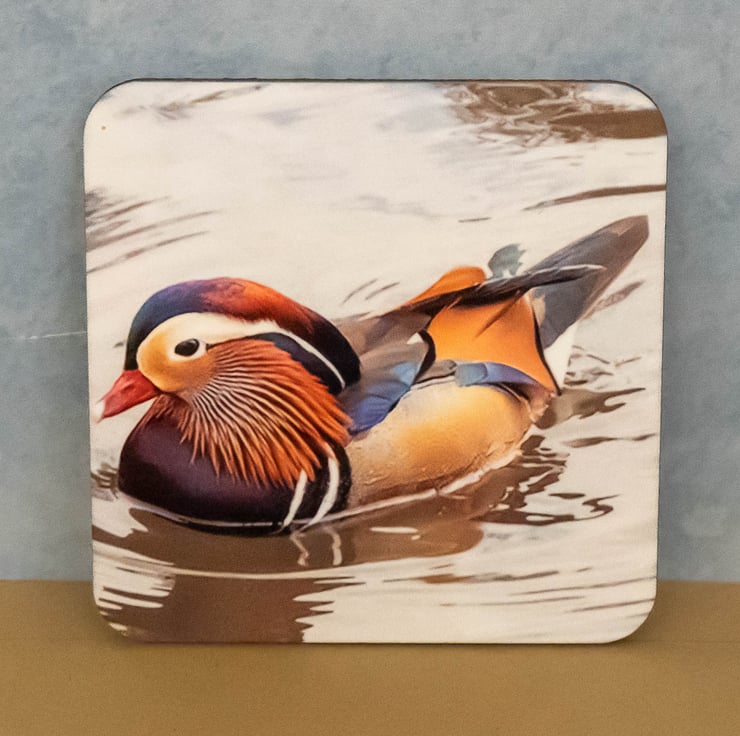 High quality heat resistant coaster featuring a photo of a Mandarin Duck. I took the photo on 13.05.21 whilst walking in Osterley Park.