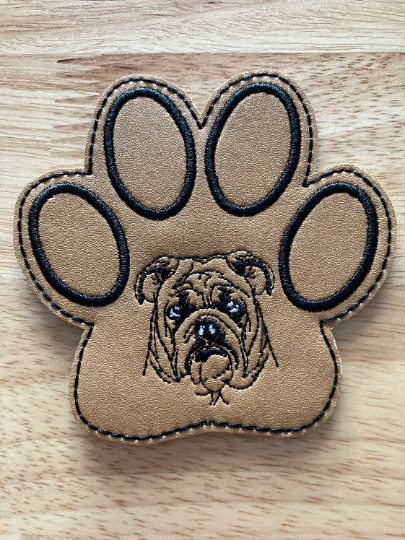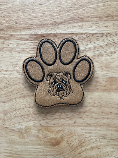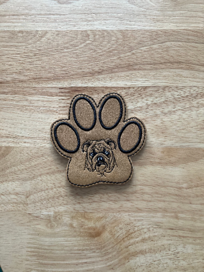 English Bulldog paw print coaster made from vinyl and backed with felt.