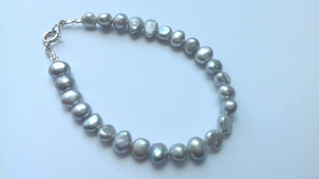 6-8mm Grey Freshwater Pearl Bracelet with Sterling Silver Bolt clasp.
