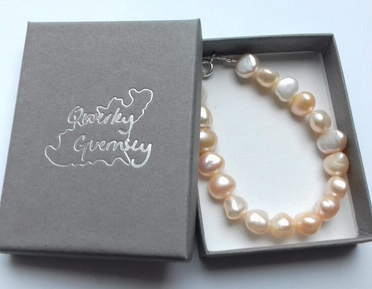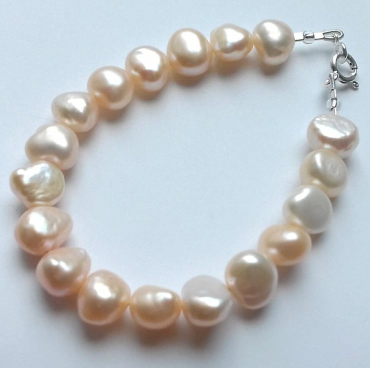 10-12mm Peach Freshwater Pearl Bracelet with Sterling Silver Bolt clasp.