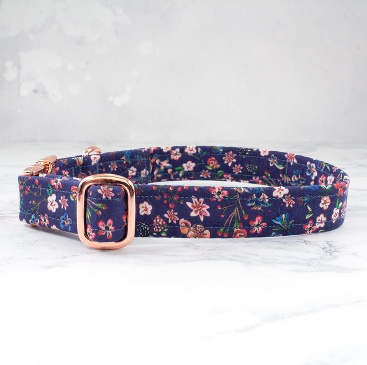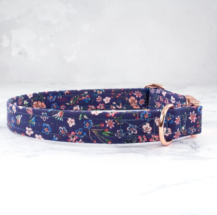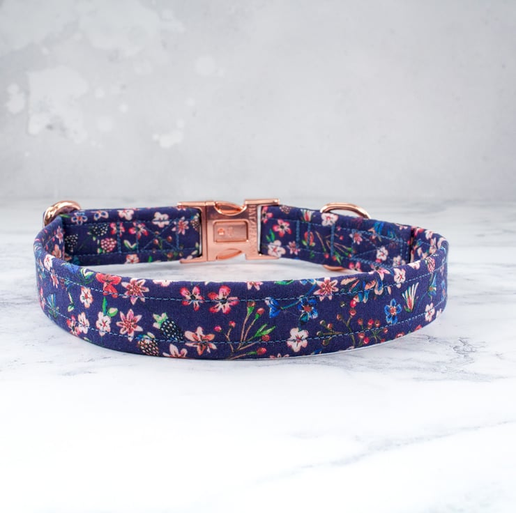 Sandwiched between this beautiful fabric is a core of webbing, which gives these collars and leads durability, along with quality hardware such as a welded metal 'D' ring, buckle of your choice and tri-glide to match. All stitching on the areas of the collar and lead that will receive the most pressure will be triple stitched, along with a strong box stitch.