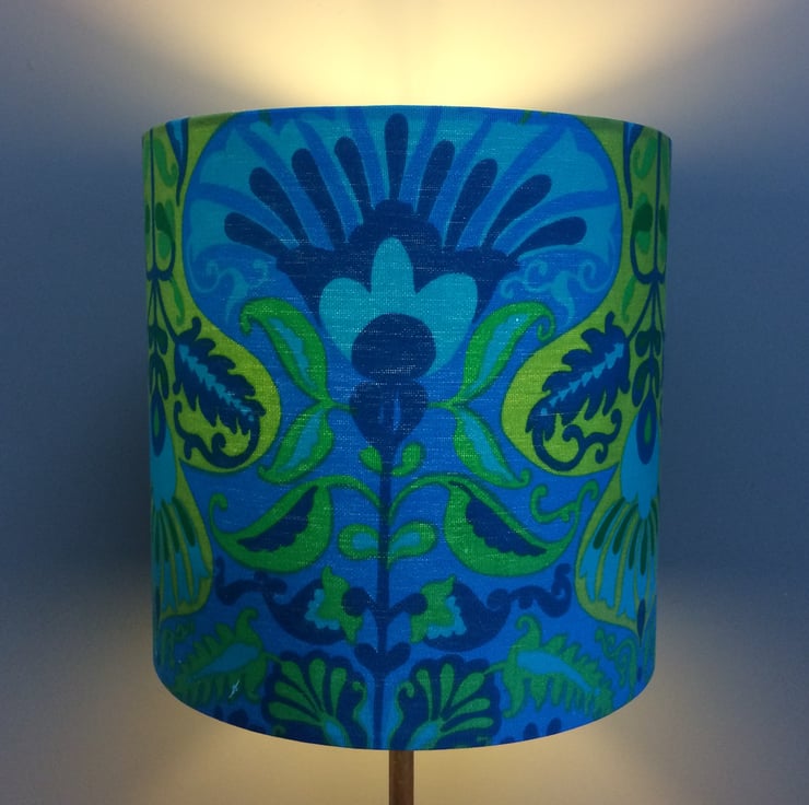 Blue Green BOHO Abstract 60s 70s Marrakesh Jonelle vintage fabric Lampshade - A funky colourful focal point to any room.