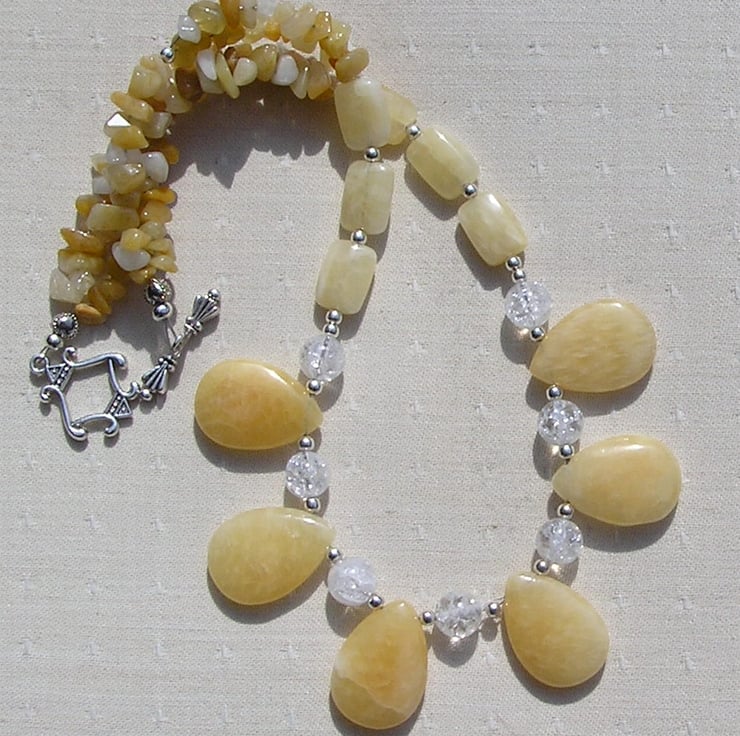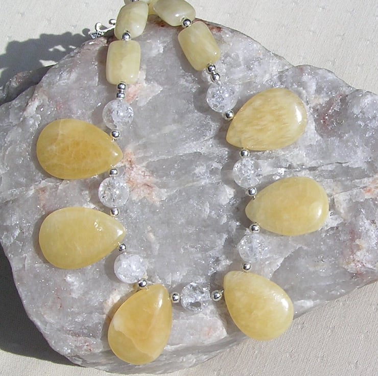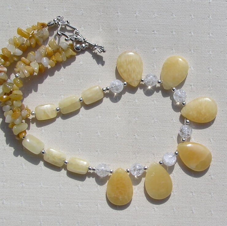 Honey Quartz & Yellow Opal Crystal Gemstone Statement Necklace