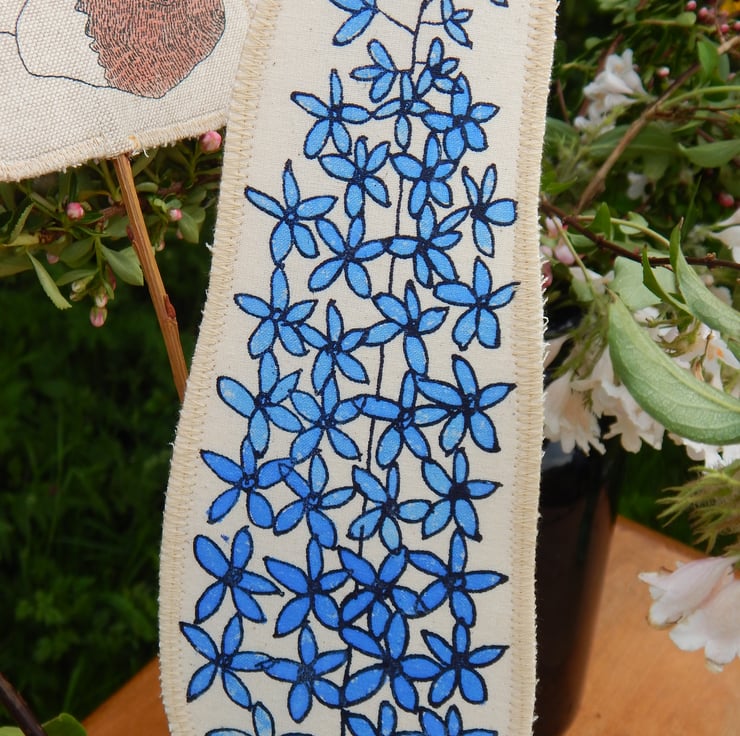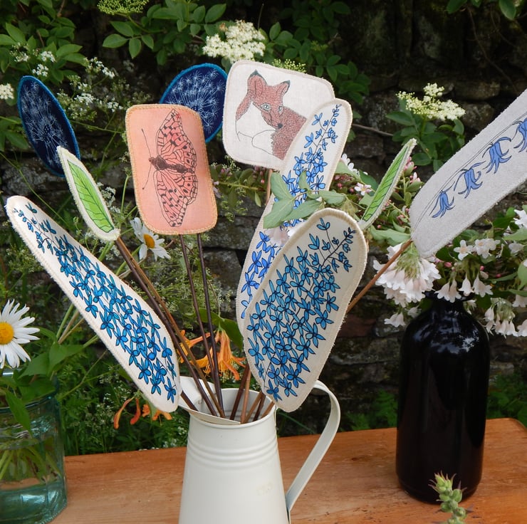 This is a bouquet of 10 fabric on willow creations. Each is double sided with interfacing for stability. They are all have running stitch and then a zig zig stitched finishing to ensure fraying is kept to a minimum. They are then hand glued onto willow which measures about 40 cm in length.