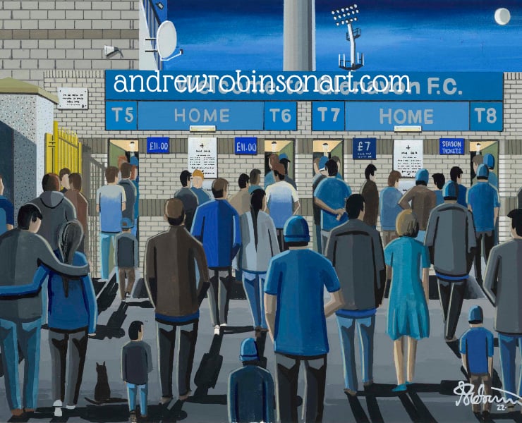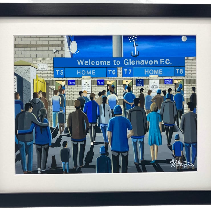 Titled ‘Mourneview in Blue’ this is a unique Glenavon F.C print direct from myself the artist. My artworks are a celebration of the match day experience and of stadium architecture.