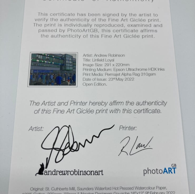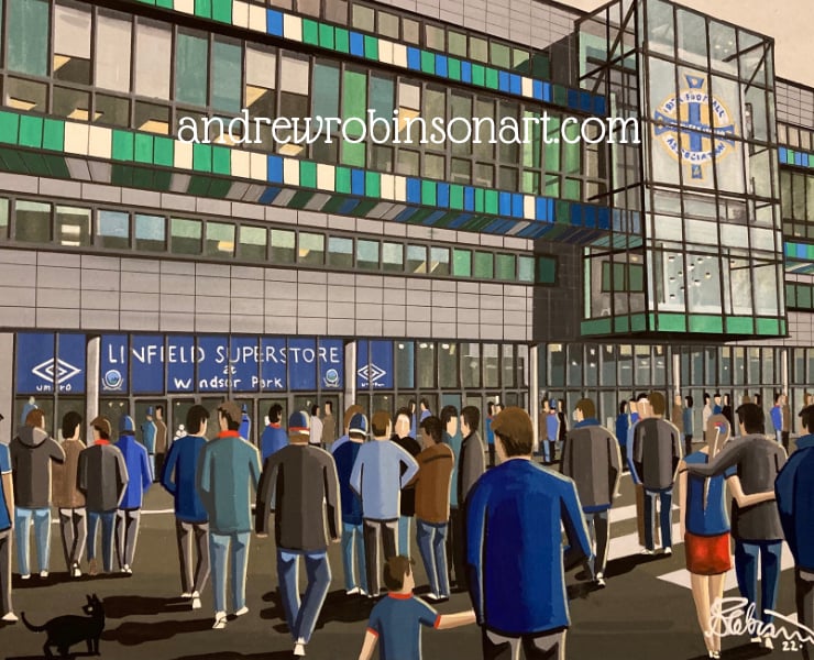 Titled ‘Linfield Loyal’ this is a unique Linfield F.C print direct from myself the artist. My artworks are a celebration of the match day experience and of stadium architecture.