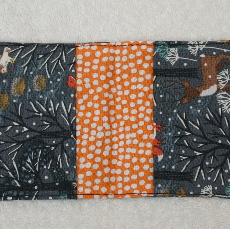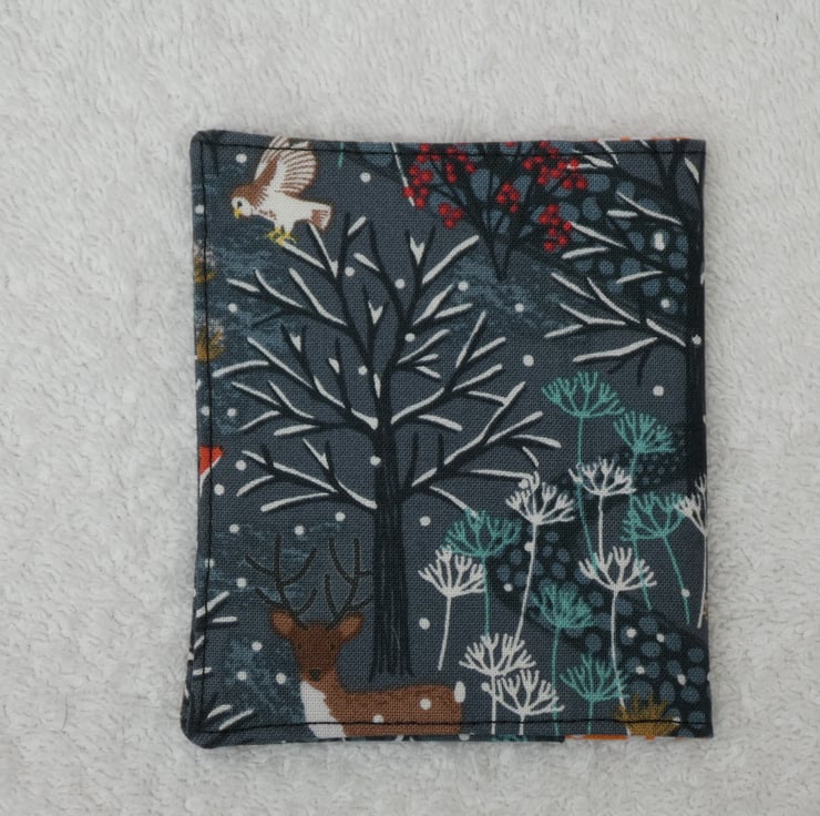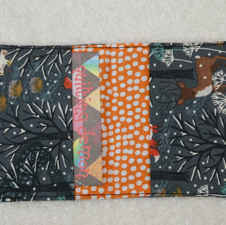 I have designed and created this handy flip card wallet to hold 2 credit cards. The holder is created from cotton fabrics, with interfacing to give structure. There are 2 small interfaced pockets for your cards.