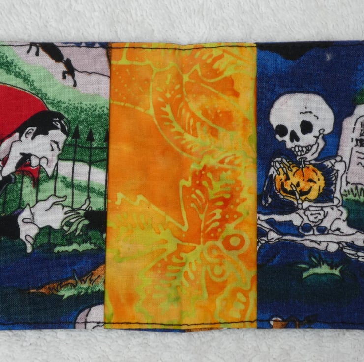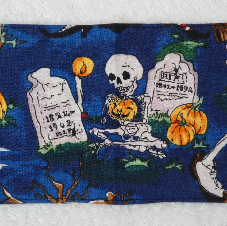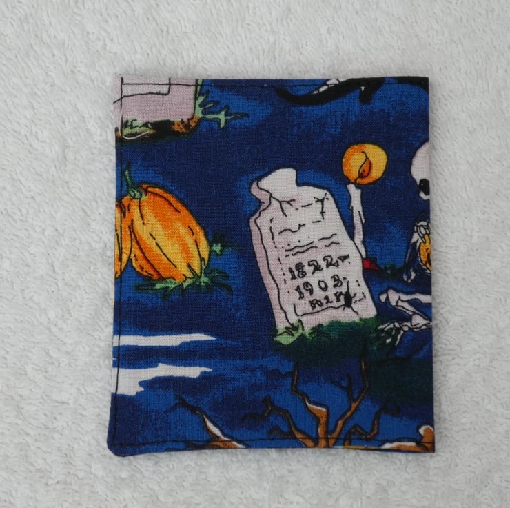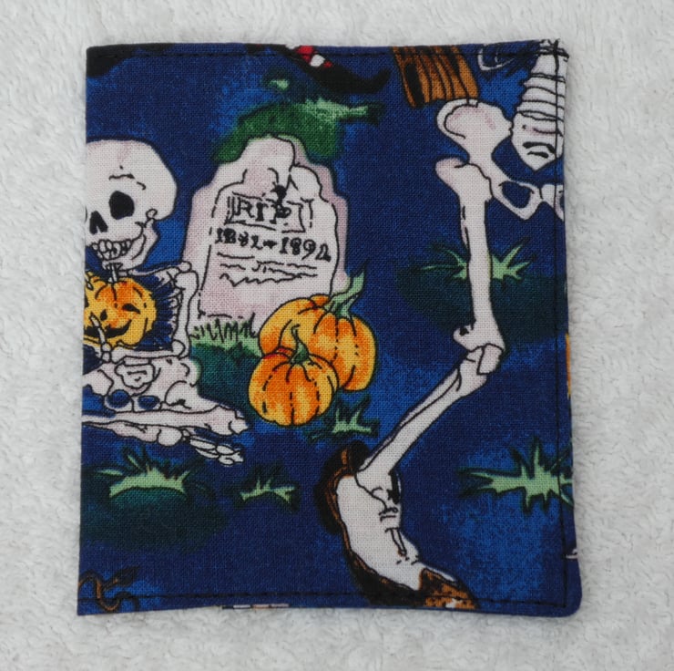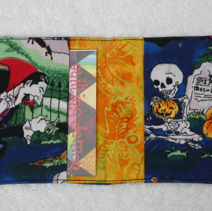Card Wallet. Credit Card Flip Wallet. Skeleton and Gravestone Print Fabric