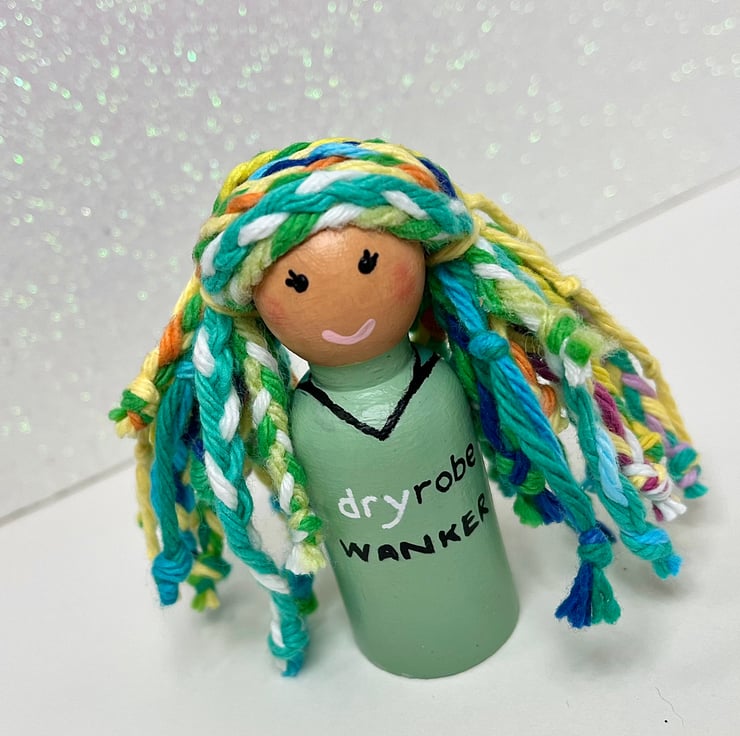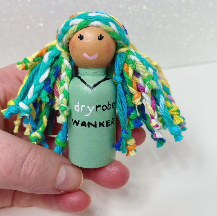 This listing is for our Green ‘Dryrobe Wanker’ Peg Doll Ornament for Wild Swimmers and Cold Water Dippers