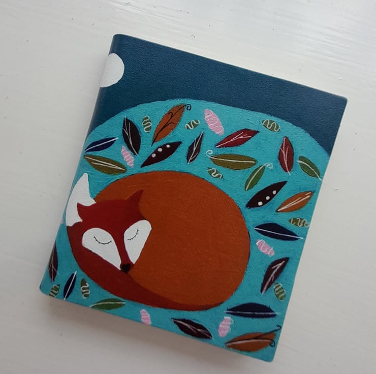 9cm x 10 cm recycled leather notebook handy for a pocket or a handbag.