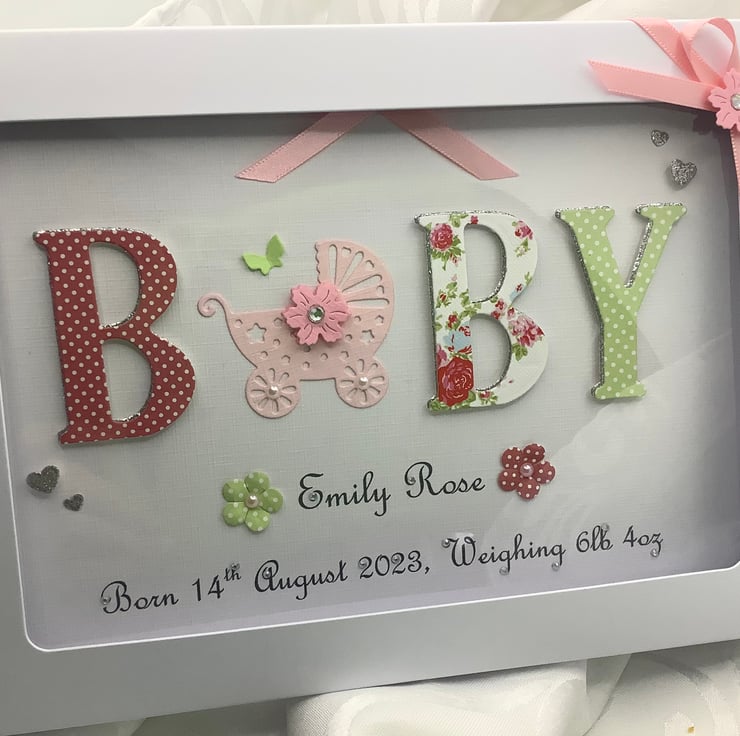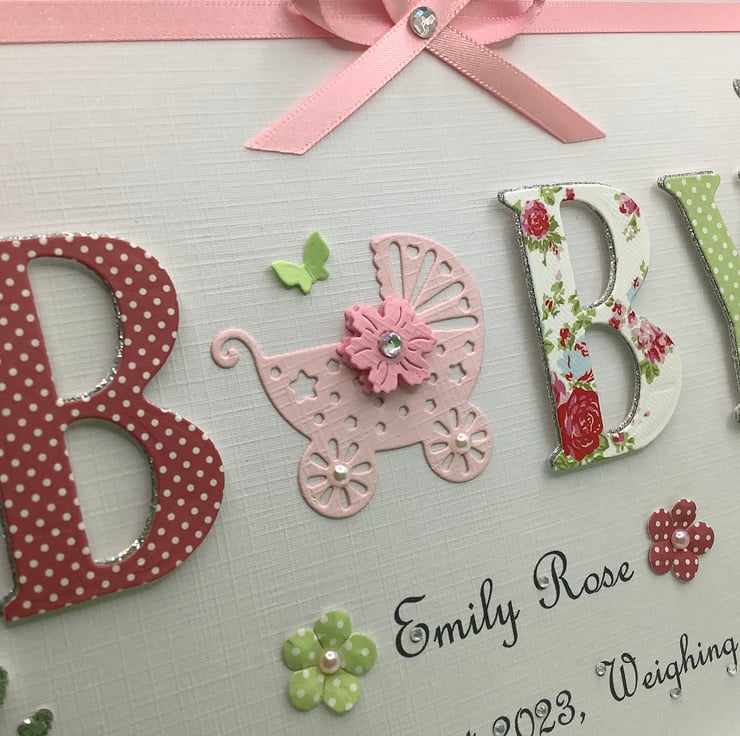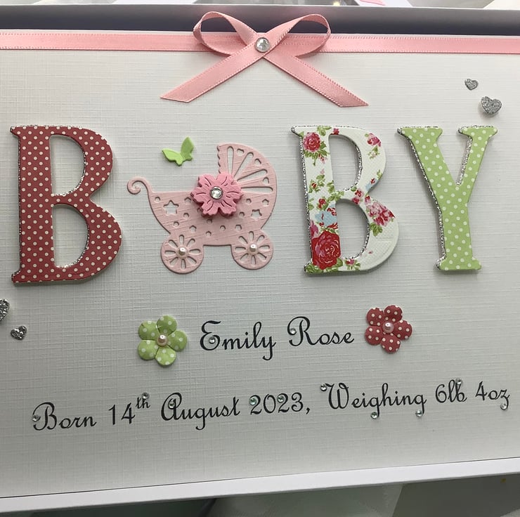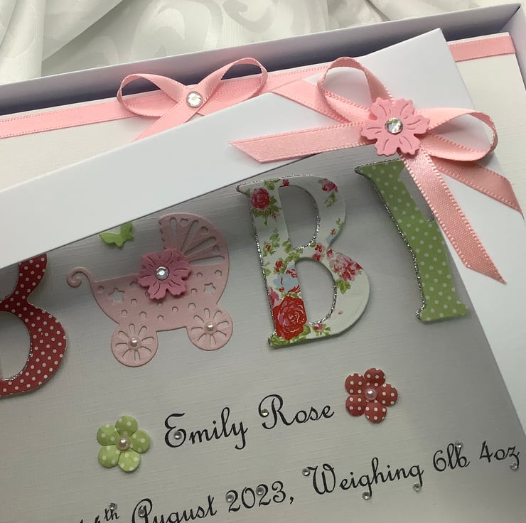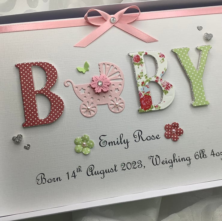 Personalised Handmade New Baby Girl Card With Keepsake Gift Box
