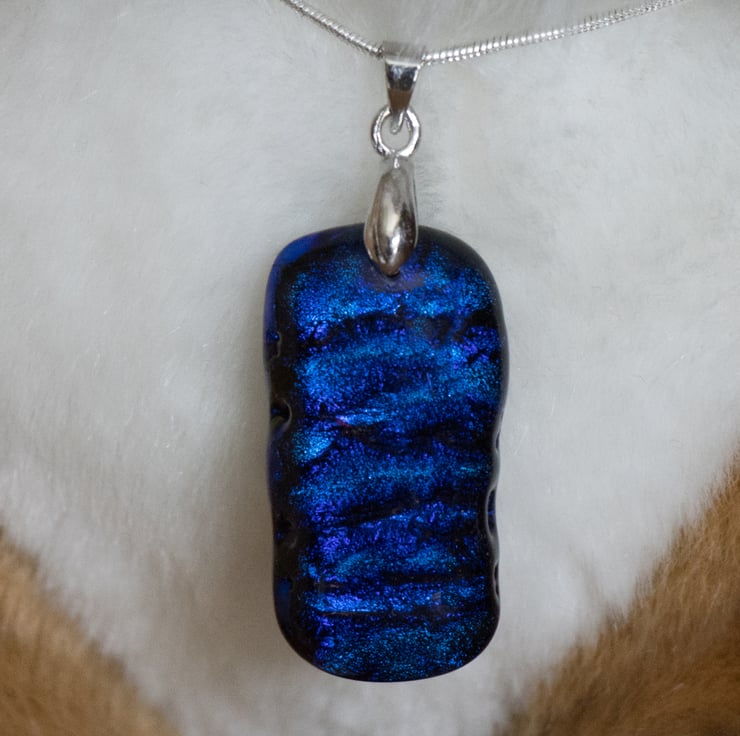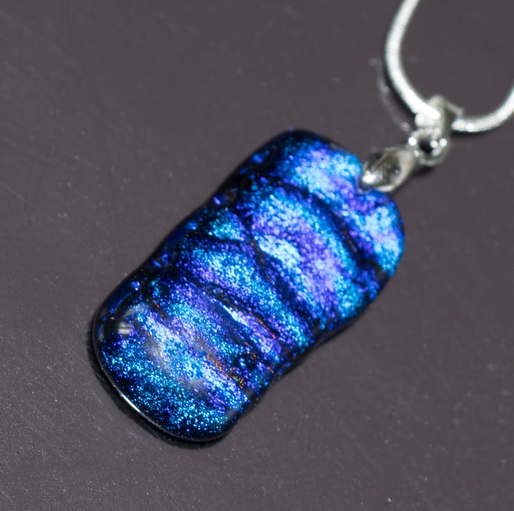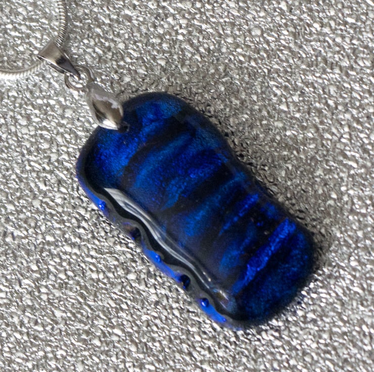 Rectangular Blue and Black Dichroic Glass Pendant - 1185