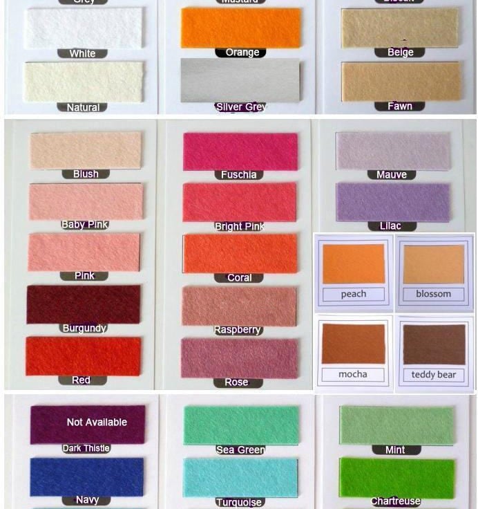 Custom color is complimentary (see color chart for available wool felt colors we carry).