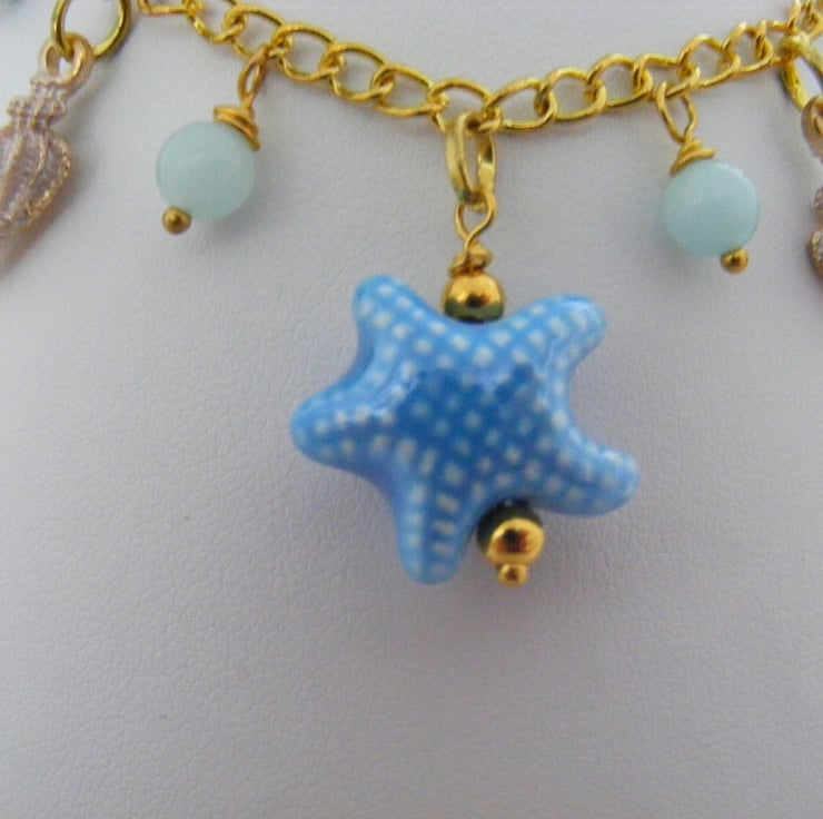 I've handmade this charm anklet with, 20mm turquoise ceramic starfish charm,