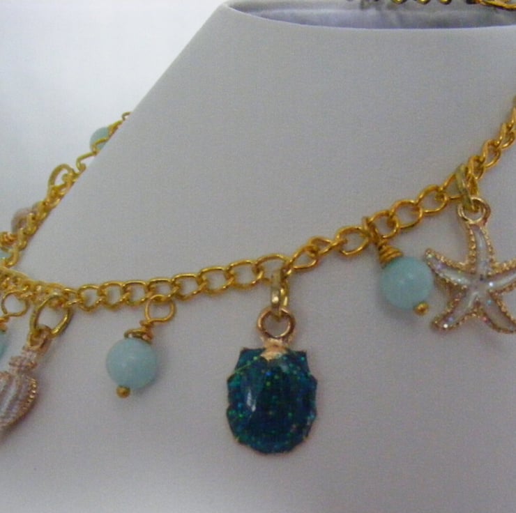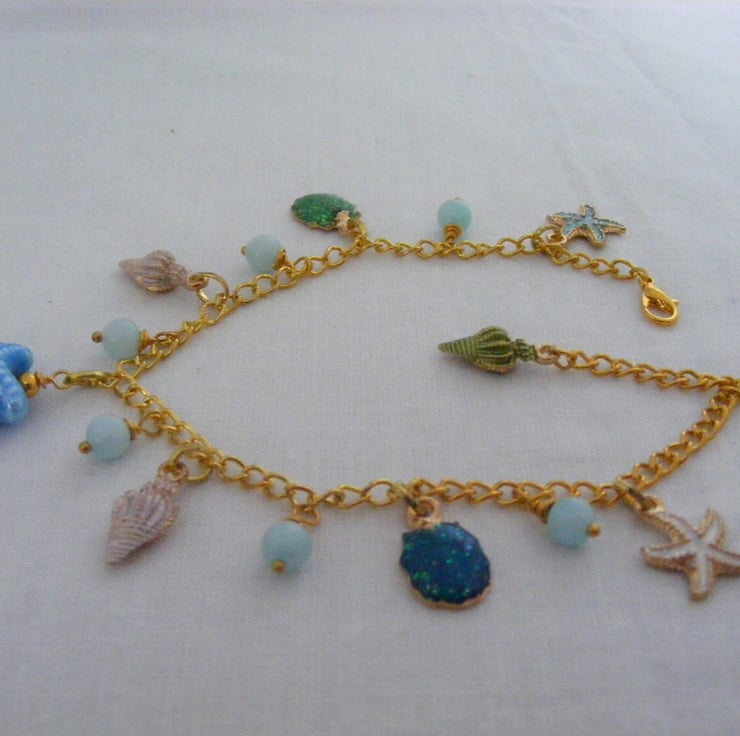 Turquoise and Gold Sea Themed Charm Anklet