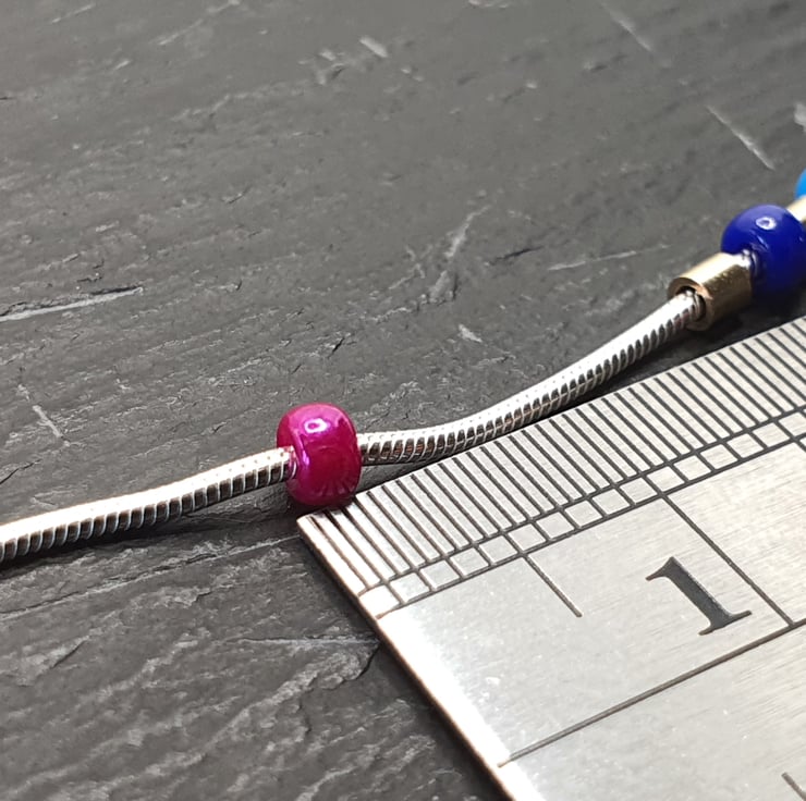 I make this choker by threading the beads onto the chain and then soldering the chain end so that the beads cannot fall off.
