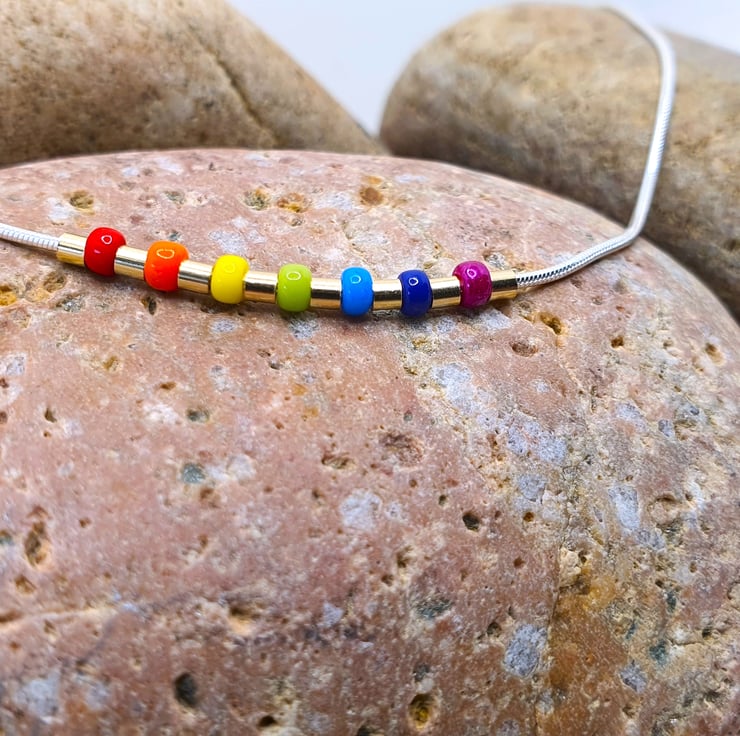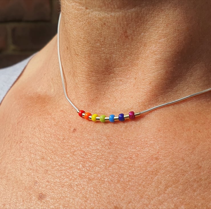 This type of choker reminds me so much of the 70's where rainbows ruled! Thought it would be fun to match that 70s vibe with support for Pride. This necklace has a real summer vibe even in winter ;-)