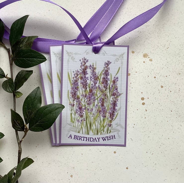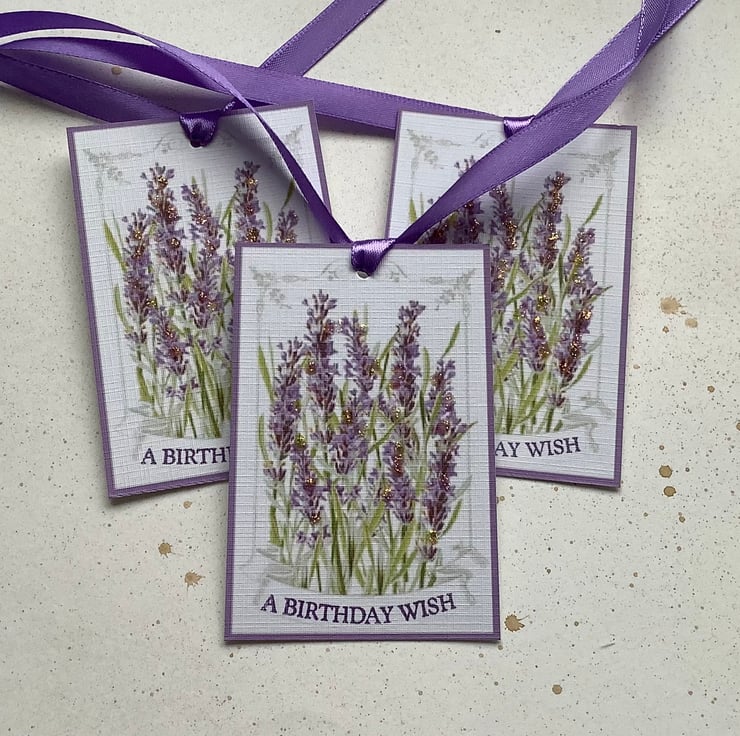 GIFT TAGS ( set of 3) Vintage-style.' Lavender Fields' Birthday. Purple , Flower