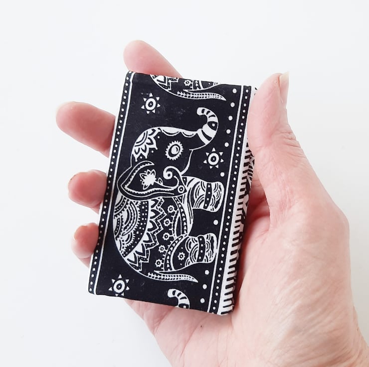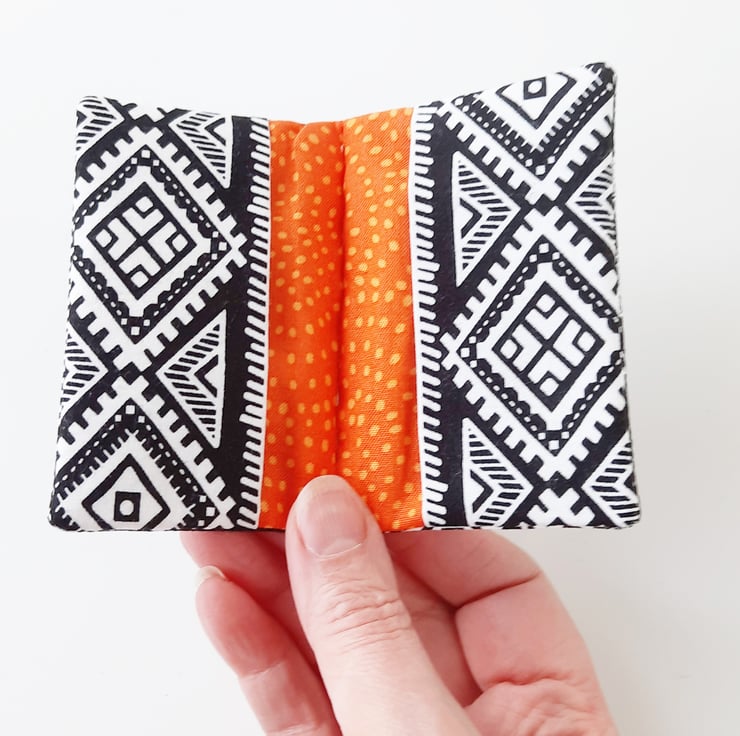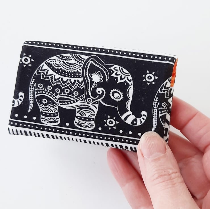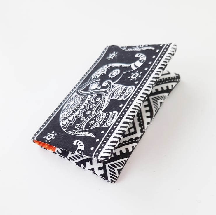 A small card holder, ideal for when you just want to keep a couple of credit cards safe. It will hold a maximum of 4 cards, but it can also be used for business cards. It will hold around 5 cards in each pocket, depending on the thickness of your card.
