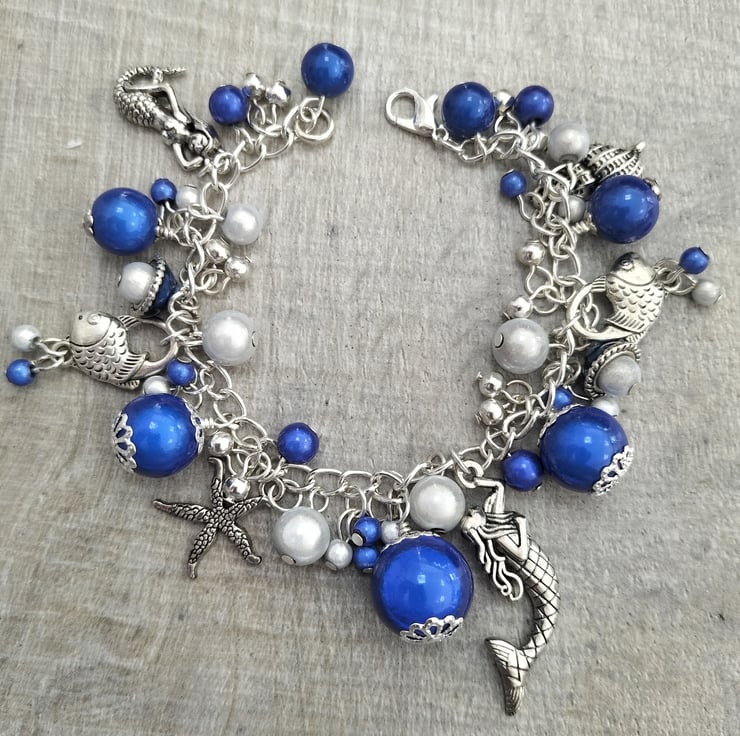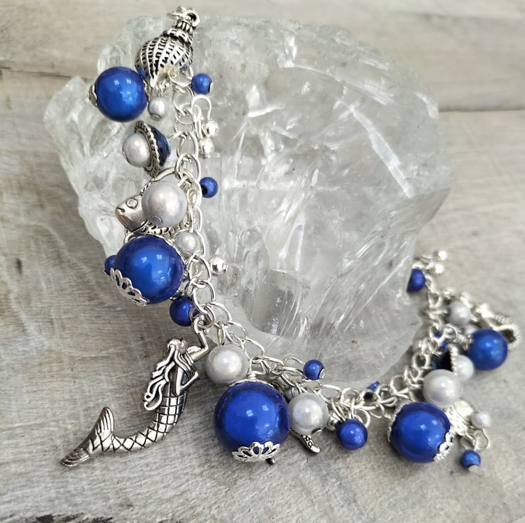 This gorgeous bracelet is made using an open link curb chain with a selection of sea themed charms.