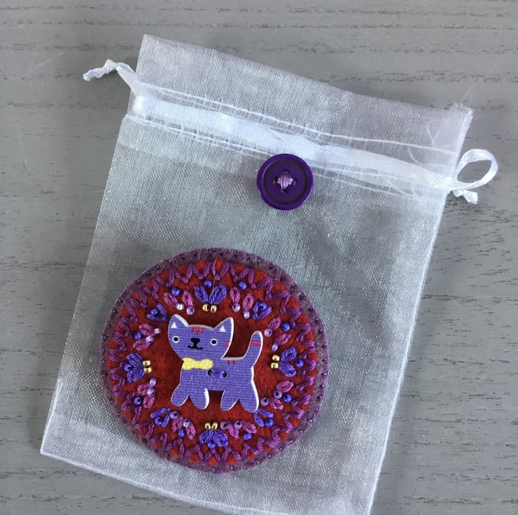 This Hand Embroidered Lavender Cat Brooch is perfect for a birthday, thank you, friendship gift. A perfect gift for cat lovers. It’s light to post so makes an ideal letterbox gift for a friend or relative......or to treat yourself......